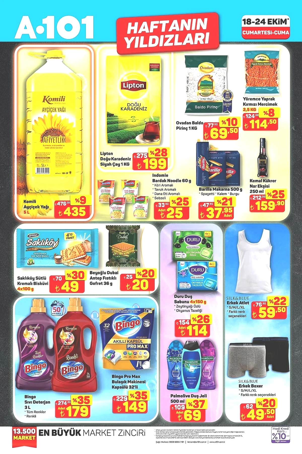 A101'in “Haftanın Yıldızları” kampanyası, 18–24 Ekim 2025 tarihlerinde tüm Türkiye'deki mağazalarda ve A101 Online platformunda geçerli olacak. Ürünlerin sınırlı stoklarla sunulması nedeniyle birçok mağazada sabah saatlerinde yoğunluk yaşanıyor.
